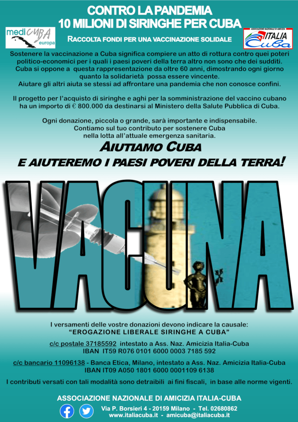 Locandina del progetto con i dati per le donazioni disponibile sul sito dell’Associazione www.italiacuba.i