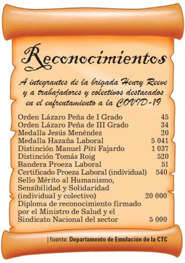 Nel 2020 abbiamo svolto un’ampia giornata di omaggio agli operatori sanitari a cui sono stati consegnati numerosi premi, tra i quali spicca per la sua novità il Sigillo di Merito per l’Umanesimo, la Sensibilità e la Solidarietà, aggiunto al sistema di decorazioni del CTC e dei Sindacati Nazionali degli Operatori Sanitari e della Difesa Civile, da assegnare una sola volta a gruppi e lavoratori eccezionali. Tra l’anno scorso e finora nel 2021, cinque eccezionali professionisti della salute, tra cui scienziati, sono stati insigniti del titolo onorario di Eroe ed Eroina del Lavoro della Repubblica di Cuba. Siamo molto orgogliosi delle prestazioni degli uomini e delle donne del settore. Per la loro protezione, perché sono i più esposti al virus e come riconoscimento del loro lavoro, sono stati i primi ad essere immunizzati.
